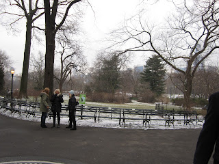 Sitten olikin aika mennä takaisin satamaan ja kohti maailman mekkaa, eli New Yorkin pörssi. Sinne ei muuten sitten ole ollut enää mitään asiaa 9/11 jälkeen. Myöskin turistit olivat ennen voineet ajella pilvenpiirtäjien hisseissä. Eivät voi enää. Kaikki on kuulemma muuttunut tuon päivän jälkeen Tällä aukiolla oli enemmän poliiseja kuin Joensuussa. Mutta saatiin kuitenkin muutama kuva otettua.